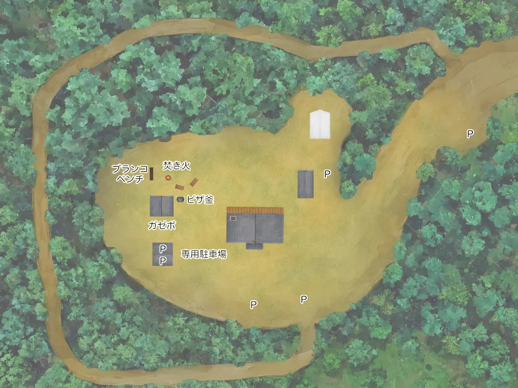 ププの森への入り口の看板が小さく少しだけわかりにくかったですが、事前にオーナーから「Googleマップの方が分かりやすいですよ」と教えてもらい大きく迷う事なく到着。