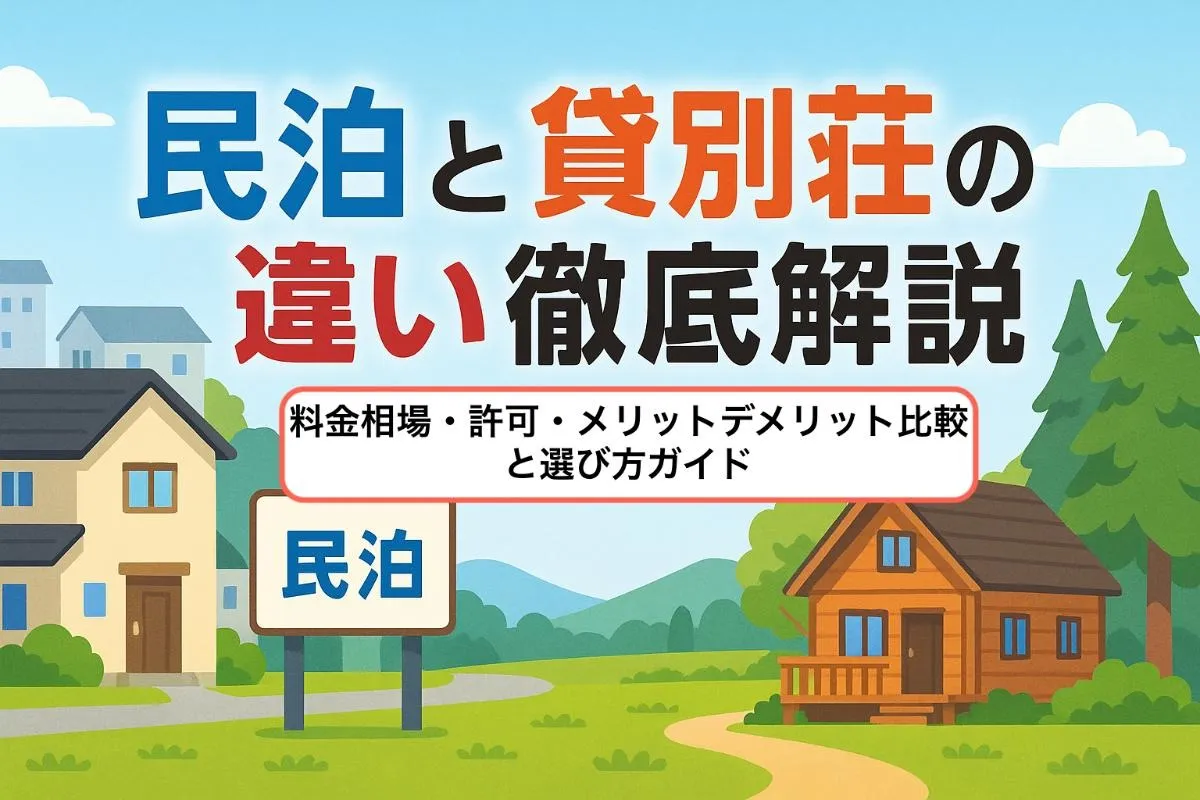 この記事では、民泊と貸別荘の違いを基本定義から法規制、料金相場、利用シーン、運営ノウハウまで徹底的に比較解説します。