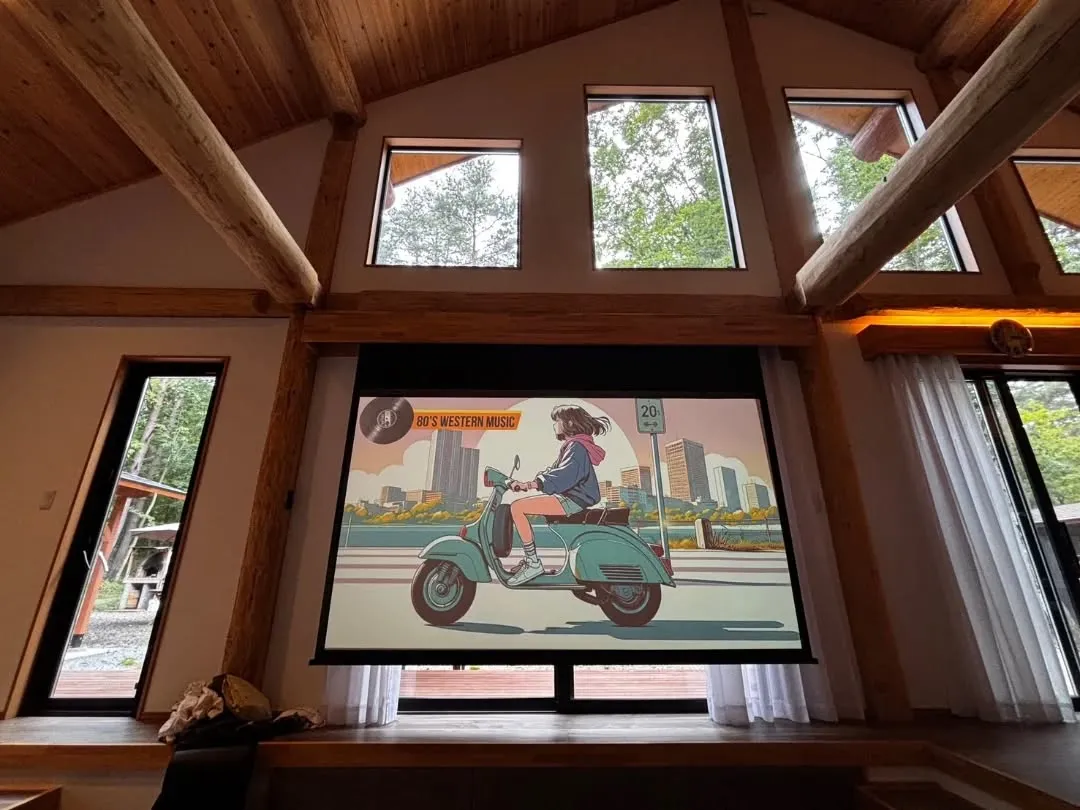 自然の静けさと、映像を楽しめる現代的な設備が調和したこの空間で、ゆっくりと流れる時間を味わってみてください。
