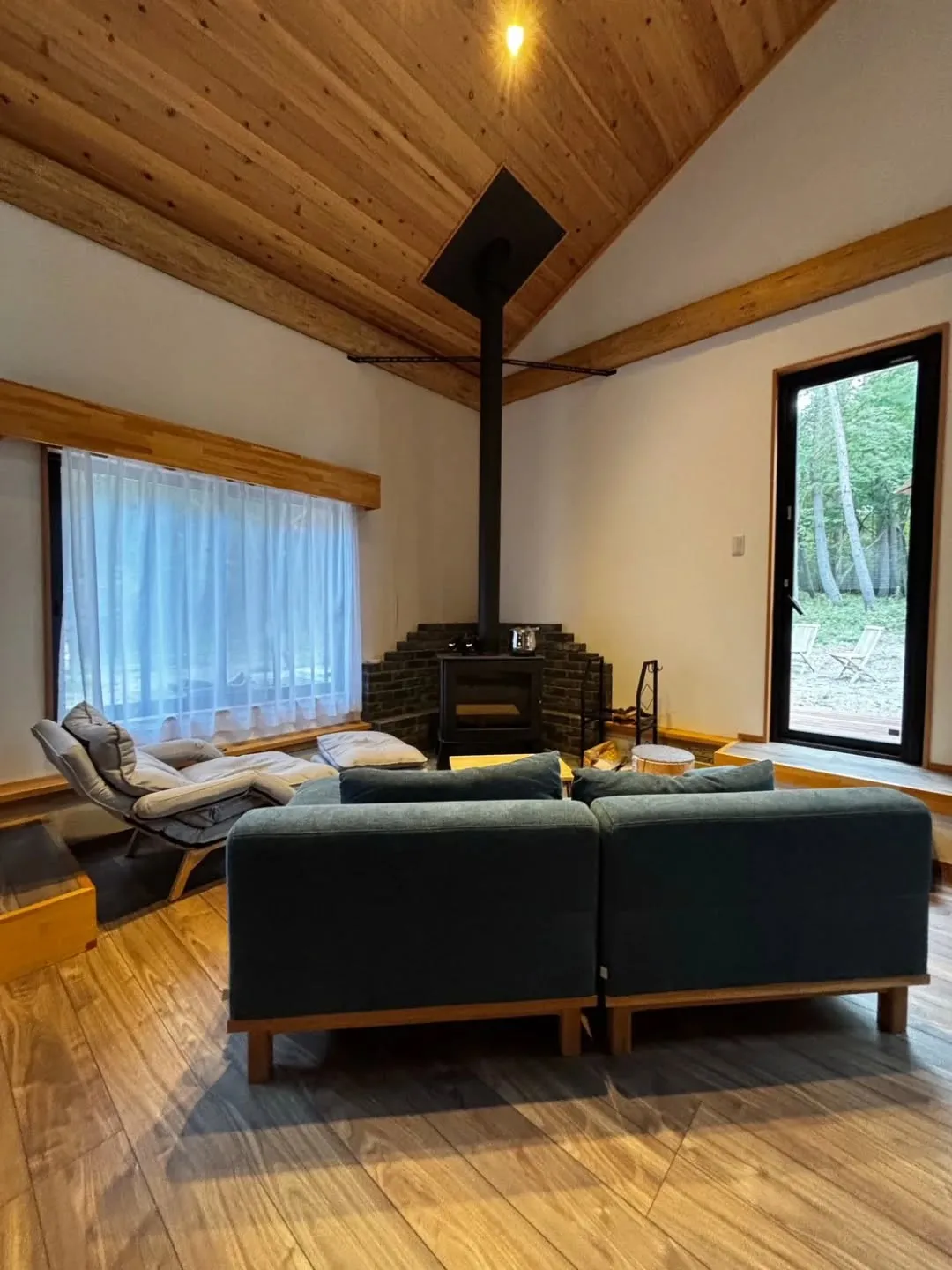 薪ストーブの炎と、冬の森が持つ静けさがひとつに溶け合うこの空間で、日常から離れたリラックスできる時間をお過ごしください。