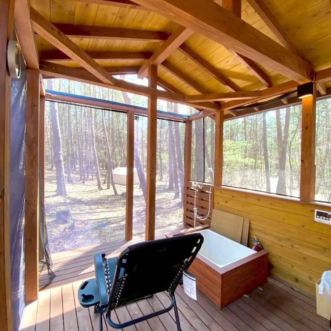 自然の静けさと半屋外ならではの開放感がひとつに溶け合うこの空間で、ゆっくりと心がほどけていく時間をお楽しみください。
